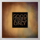 Las buenas vibraciones sólo citan el arte de la pared poster, con tonos sepia, caqui y marrón con fondo de diseño de texto en negrita y acuarela. Derechos de autor de diseño de Ann Powell.