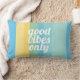 Este personalizado cita almohadas de buena vibra sólo en franjas coloridas moda moderna diseño audaz disponible para la decoración de dormitorios o casa. Derechos reservados de Ann Powell.