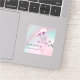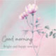 El diseño se caracteriza por su diseño pegatina y colores atractivos: buenos días y debajo de él, el término "mañana brillante" y un nuevo día al lado de las palabras flor rosa y rosa y morado claro.