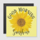 Foto de primer plano de un girasol amarillo brillante con el texto "Good Morning Sunshine" sobre fondo amarillo claro. Si lo desea, puede reemplazar fácilmente la palabra Sunshine por un nombre u otro texto.