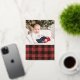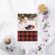 Feliz Navidad! Envíe saludos de Navidad a la familia y amigos con esta tarjeta de fotos de Navidad de Relieve metalizado dorado. Presenta un estilo rústico de manta de búfalo en rojo y negro. Personalice agregando sus textos y fotos. Esta tarjeta de fotos de Navidad roja con manchas rojas está disponible en otros colores y material de cartón.