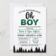 ¡Oh, chico! Esta invitación estampada de yeguas en la parte delantera y trasera es perfecta para una ducha de bebé codo a codo para celebrar la llegada de un niño. Incluye un patrón de comprobación de búfalo verde y negro y silueta de árbol. Ideal para un fiesta en otoño o invierno, un leñador, una aventura o una temática al aire libre o un lavabo con vestimenta de franela.