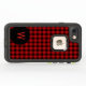 Simpático funda LifeProof FRĒ® iPhone 7 con un patrón de manto de búfalo rojo y negro, en el frente. Un círculo de texto negro, en la esquina inferior izquierda, tiene un monograma rojo de una letra listo para personalizar. Elija el estilo funda y escriba lo que desee antes de realizar el pedido.