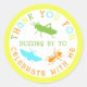 ¡Gracias a todos los invitados fiestas que se arrastraron, agitaron y saltaron por tu fiesta de cumpleaños con estas pegatinas de agradecimiento! ¡Invitaciones coincidentes disponibles!