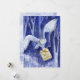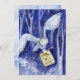 Búho mágico blanco de acuarela dibujado a mano con regalo de Navidad está volando a través de la noche y la nieve para traer alegría y amor.