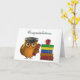 Búho lindo con los vidrios del ojo que llevan una situación del libro además de una situación de libros y de la enhorabuena de una manzana en tarjeta de felicitación de la graduación
