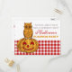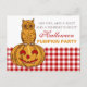 Búho en la tarjeta postal de invitación Gingham Fiesta de calabaza de Halloween. Fantástico para Halloween, Birthdays e.t.c. Simplemente personalizar esta invitación y personaliza la redacción para que se adapte a tu evento. es decir, "Halloween Fancy Dress Fiesta" "Halloween Birthday Party" "Halloween Bachelorette Party". Este búho encaramado sobre una sonriente calabaza de Halloween tiene un diseño rústico y elegante y tiene las palabras "Una lechuza y un hollín y una calabaza para arrancar". El fondo tiene un claro patrón de Gingham que le da a esta invitación un estilo muy granero.