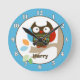Nuestro reloj de pared super lindo Owl in Tree Tops puede ser personalizado con cualquier nombre. Este elemento también se puede imprimir sin nombre —> para eliminar el nombre, haga clic en el botón "personalizar" y luego en "x" junto a la capa con el nombre del texto.