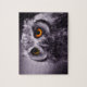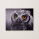 Rompecabezas de juego mostrado con una foto impresa de un hermoso búho salvaje. Personalizar este artículo o compra tal cual. Imagen de stock