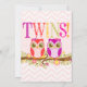 Los búhos adorables de este de la fiesta de bienvenida al bebé de la invitación bebé de las características en rosado y la púrpura - perfectos para Baby Shower para un sistema de chicas gemelos - corrigen simplemente el Info con sus los propios para las invitaciones perfectamente personalizadas {{el PERSONALIZAR del tecleo para cambiar el fondo rosado a cualquier color que usted le quisiera… puede también cambiar colores y las fuentes de texto para algo del texto}}