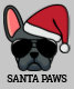 Únete a la diversión festiva con este lindo Navidad. El diseño presenta un bulldog francés de color azul con un sombrero de Santa María y gafas de sol aviador con la inscripción "Santa Paws" en el suelo.