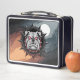 Esta metalizado lonchera presenta un bulldog feroz con ojos rojos brillantes rodeado de un diseño de cuello con puntas, ambientado en un espectacular fondo giratorio con luna llena. Perfecto para los amantes del estilo atrevido y atrevido con un toque gótico. Duradero y elegante, esta lonchera es ideal para la escuela, el trabajo o las comidas en el momento.