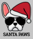 Únete a la diversión festiva con este lindo Navidad. El diseño presenta un bulldog francés de color blanco vestido con un sombrero de Santa Claus rojo y gafas de sol aviador con la frase "Santa Paws" impresa debajo.