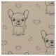 Tela de bulldog francés para sus proyectos de costura y artesanía creativa. La impresión está hecha de simples pero adorables ilustraciones personalizados de bulldog francés y una multitud de dulces corazoncitos impresos alrededor del dulce cachorro. El fondo está en un color crema neutro y se puede cambiar fácilmente a un color diferente para que se adapte mejor a su proyecto. Buen material para todo aquel que posea y ame bulldoges franceses.