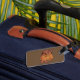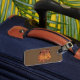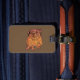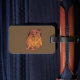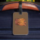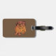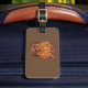 Dibujo de Bulldog francés - perro dorado - en la etiqueta de equipaje con correa de cuero.Añada su nombre para personalizar.