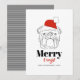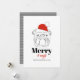 Envía alegría festiva con esta tarjeta de Navidad "Merry & Bright" que presenta una ilustración de arte de línea negra en negrita de un bulldog que lleva un clásico sombrero rojo de Santa. El fondo blanco limpio y la tipografía minimalista en negro y rojo crean un aspecto moderno y llamativo. Perfecto para los amantes de los bulldogs, dueños de mascotas y cualquiera que quiera compartir un saludo navideño divertido y elegante. Personaliza con el nombre de tu familia y año para un toque estacional especial.