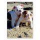 Foto de dos cachorros Bulldoges ingleses en la playa