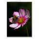 Bumblebee está sobre una flor rosa de margarita cosmés de bonito con fondo verde.