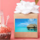 Bungalow sobre el agua en el pegatina rectangular