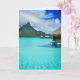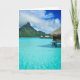 Tarjeta de felicitación de un centro turístico de la casa de planta baja del overwater de la luna de miel en la laguna de las azules turquesas de la isla del Pacífico de Bora Bora, cerca de Tahití en Polinesia francesa.