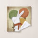 Un caprichoso conejo blanco sostiene una bellota mientras su bufanda sopla en la brisa. El fondo está formado por tres árboles de colores otoñales con diferentes motivos en blanco. Imagen linda para cualquier amante de los animales de bosque. Diseño original de Christie Black de Creations from the Heart.