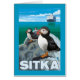 Puffins & Cruise Ship - Sitka, Alaska - Vintage Travel Poster fue creado en 2007. Esta imagen muestra escenas de Sitka, AK.