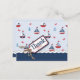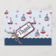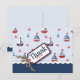 Colores náuticos en rojo clásico, blanco y azul con ancla y cangrejos y una etiqueta de agradecimiento a la novedad con twine.
