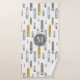Decoración perfecta del baño de huéspedes para el campamento fluvial, este juego de toallas de personalizado con vista de pájaro tiene un tamaño variado de barcos de mar sobre un fondo blanco personalizable con monograma personalizado sobre una pendiente de círculo gris - el patrón incluye 3 barcos de carga, un barco de vela, un crucero, un bote de remo, un yate y un bote de pesca, orientado verticalmente - Sobre el río © katz_d_zynle es 2019