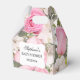 Esta caja floral está cubierta de rosas rosas rosas y astromeirías blancas. La etiqueta tiene espacio para el nombre de la nueva mamá y otra información de ducha.
