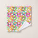 Este conjunto de toallas tiene un diseño geométrico de tres círculos anidados y repartidos por el diseño en varios colores.