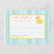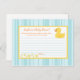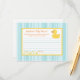 Estas adorables Tarjetas de Consejos Escritos de Burbujas Ducky Bubbles son perfectas para cualquier ducha de bebé o fiesta de cumpleaños. Simplemente entregue estas tarjetas a sus huéspedes, junto con bolígrafos Sharpie de punta fina. Sus invitados pueden escribir cualquier consejo que tengan para que sea la nueva mamá o para el niño o chica de cumpleaños. Estos se imprimen en un tamaño de 4,25" x 5,6" en un material de cubierta ultradelgado de 120 libras (material de tarjeta). Tenemos una línea entera dedicada a este diseño aquí en el zazzle store bajo la pestaña * Diseño Colecciones del menú para incluir invitaciones (5x7), Etiquetas de retorno, Etiquetas de correo, Sellos para sobres, estampillas de rehenes, Tartas de copas, Envolturas de botellas de agua, Hershey's 1.55 oz. Envolturas para barra grande, Pegatinas en miniatura de Hershey, Envolturas para bolsitas de palomitas de microondas, Tarjetas para lugares escribibles, Toppers para bolsitas de goody, Tarjetas de agradecimiento FLAT (4x5), Tarjetas de agradecimiento FOLDED (4x5), Etiquetas de favoritos, Tarjetas de menú, libros de papel, Tapas de ligas, Tarjeta de bingo Marcadores, Hojas de llamadas con tarjeta de bingo, tarjetas de consejo para escritura (4x5), etc.