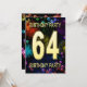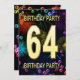 Agregue un nombre al personalizar para esta invitación de grupo única. Invitación a la fiesta de cumpleaños número 64 con fuegos artificiales y burbujas. Añade tus detalles al interior para crear una invitación de diversión perfecta. Enciende el cielo con estos gloriosos fuegos artificiales. Una invitación a una fiesta de cumpleaños que tiene estilo y mucha diversión.