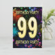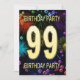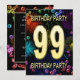 Agregue un nombre al personalizar para esta invitación de grupo única. Invitación a la fiesta de cumpleaños número 99 con fuegos artificiales y burbujas. Añade tus detalles al interior para crear una invitación de diversión perfecta. Enciende el cielo con estos gloriosos fuegos artificiales. Una invitación a una fiesta de cumpleaños que tiene estilo y mucha diversión.