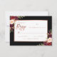 Magnífico color burdeos rojo floral color morena negro boda rsvp diseño horizontal con falso rosa de Relieve metalizado oro marco delgado de línea delgada y rosa de oro "rsvp" escritura con letras a mano. La Invitación a la boda coincidente está disponible en la tienda. Personalizar con el texto rsvp de tu boda usando el menú de edición.