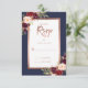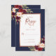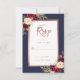 Hermoso diseño de boda de flores rojas borgoña acuarela azul marino malhumorado rsvp, acentos de lámina de rosa dorada falsa y letra manuscrita. La parte trasera de la tarjeta es un efecto de foto de lámina de rosa dorada impresa. Invitación de boda floral elegante con lámina de rosa dorada disponible en la tienda. Personalice con el texto de su rsvp de boda