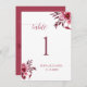 Burgundy Floral Wedding Table Number Card Elegant
