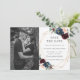 Destaca tu foto pre-boda con esta tarjeta de anuncio de compromiso con estilo boho chic. Con una hermosa corona de flores y follaje de agua en tonos burgundy, navy y blush. Personalízala con tus detalles de manera fácil y rápida, simplemente presiona el botón de personalizar para reorganizar y dar formato al estilo y ubicación del texto.