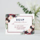 Tarjeta de RSVP de Boda Floral Acuarela Burgundy Marsala Azul - Reverso Azul