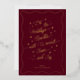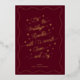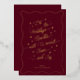 Una moderna tarjeta de vacaciones borgoñona con un borde dorado ondulado y letras brillantes. Esta tarjeta no fotográfica combina elegancia y calidez, lo que lo convierte en una elección atemporal para enviar saludos de Navidad. En la parte posterior se presentan los deseos preescritos con "simples alegrías" o espacio para añadir tu propio mensaje personal. Perfecto para compartir las vacaciones animadas en un estilo rico y festivo.