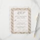 Envíe a los huéspedes una tarjeta RSVP de Boda Burlap Chevron con su invitación. El diseño de la tarjeta RSVP presenta un fondo de burlap con un sutil patrón de chevron blanco. También hay material de boda adicional disponible con este diseño. ¿Necesita ayuda con la personalización? Por favor, contáctame y elaboraré la redacción y los detalles para adaptarlos a su satisfacción.