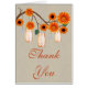 Burlap Rústico Naranja Mason Jars Gracias Tarjeta