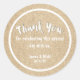 Burlap white GRACIAS Pegatina Rústico Boda. Personalizar con cualquier texto.