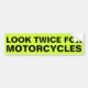 Concienciar, promover la seguridad de las motocicletas y recordar a los conductores que busquen dos veces motocicletas con esta pegatina de parachoques "Mira dos veces por motocicletas".