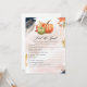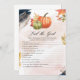 Diseñado para nuestra colección Little Pumpkin baby Shower, este personalizable Find The Guest Game Card Card incluye fondo rosa rubor, calabaza verde y naranja, texto de purpurina de oro rosa y hojas de oro con letra manuscrita. Elementos coincidentes disponibles.