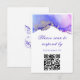 Obtén la tarjeta RSVP perfecta para tu día especial. Nuestra moderna tarjeta con lavado de tinta tiene hermosos tonos rosa, púrpura y plata. La impresionante combinación de amatista y alcohol zafiro se acentúa con una plata delicada. Añada la fecha de RSVP con la herramienta de plantilla de Zazzle - ¡fácil! Escanear para responder a la tarjeta RSVP de boda púrpura.