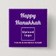 ¡Feliz Hanukkah! Deseándote alegría, paz y bendición de este festival de luces. Festividad para celebrar este diciembre y para anunciar también su negocio. Botón cuadrado de forma que puede personalizar poner su nombre de negocio, logotipo y con el saludo de Hanukkah. Personalizar y úselo como accesorio uniforme para saludar a sus clientes o clientes este Hanukkah y para promocionar también su negocio o promocionar su marca. Accesorio de ropa de personalizable que puede usar como material de marketing para crear conciencia de marca. Los colores de diseño son textos en rosa y blanco sobre fondo morado. Compruebe la apariencia después de cargar el logotipo de su empresa y escribir su nombre de negocio. Si la apariencia le resulta agradable, puede realizar su pedido ahora. Si necesita cambiar el tamaño y mover el logotipo y el nombre de su empresa para que encajen en este botón, cambie la herramienta de diseño. También puede cambiar el color de fondo, el color de fuente y el estilo de fuente en la herramienta de diseño. ¡Feliz Hanukkah! Te deseo más ventas esta fiesta.