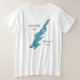 A pair of loons on the lake with a sunset in behind the and cattails on either side of them. On the back is a map of Butterfield Lake Redwood N.Y.