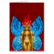 A regal fairy queen. Crowned and bejeweled with brilliant blue butterfly wings, against a vibrant red background.For lovers of fantasy and fairies.