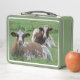 Buzón de almuerzo de dos vacas blancas-marrones