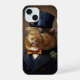 La imagen de este estuche de teléfono presenta un conejillo de indias vestido con atuendo tradicional eduardiano. El conejillo de Indias está decorado con un sombrero de top negro y una chaqueta oscura a la medida con una solapa, acentuada por un boutonniere. Debajo del abrigo, parece llevar una camisa complementada con una corbata de color claro. El tema se presenta en un fondo marrón texturizado que imita el estilo de la fotografía de retrato clásico de principios del siglo XX, invocando la moda y el estilo retrato formal de la era eduardiana. generativo y coherente